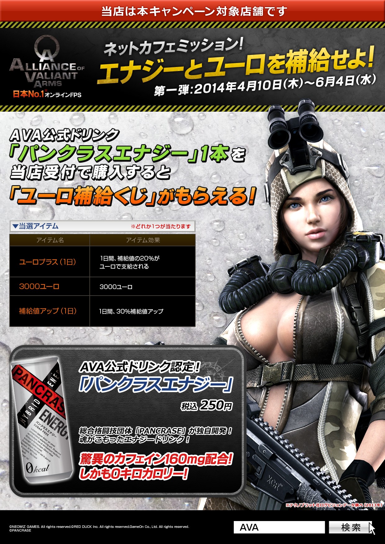 「AVA」,対象店舗でパンクラスエナジーを飲んで「ユーロ補充くじ」を当てよう