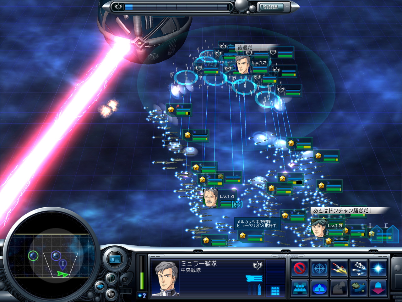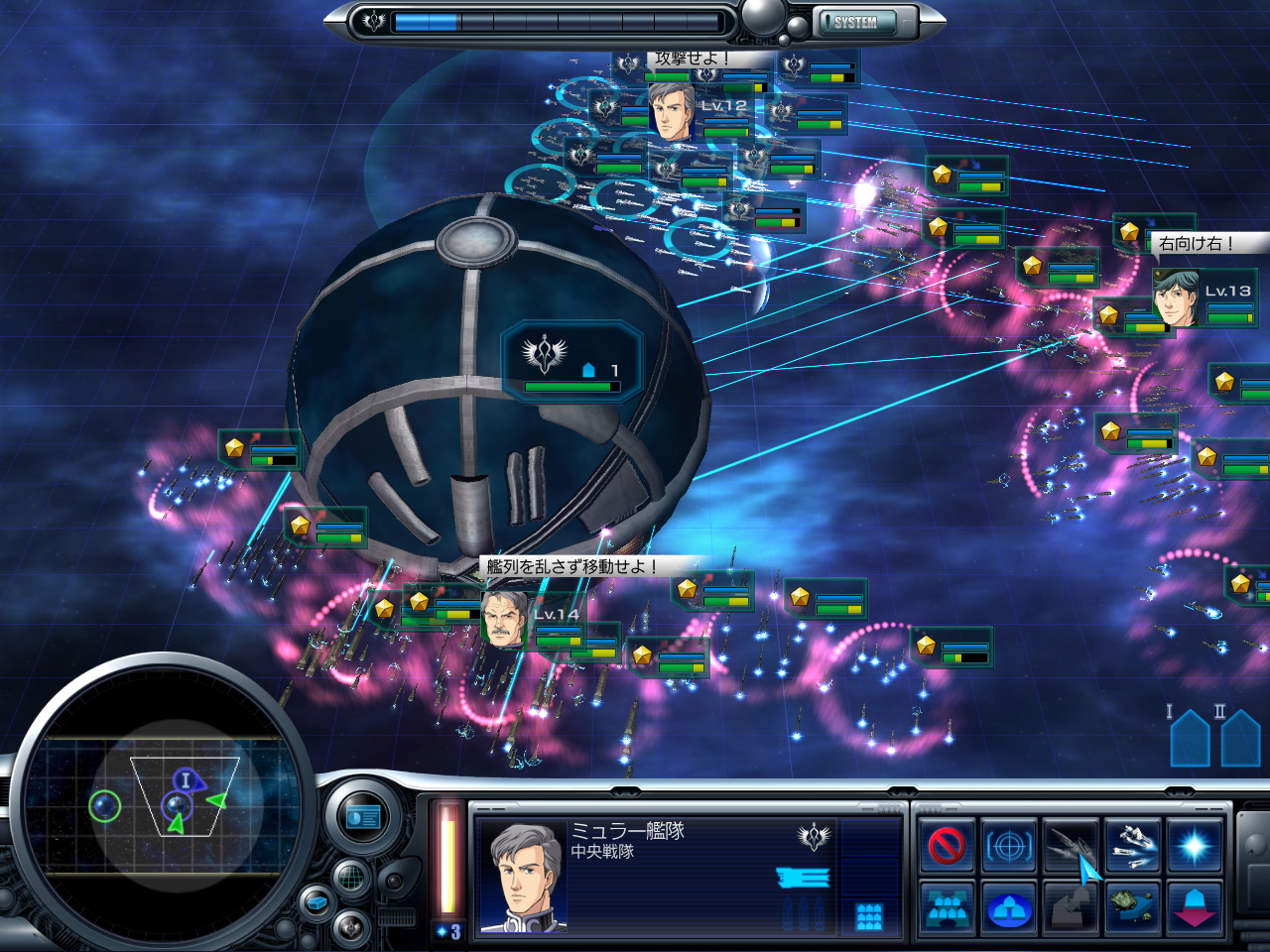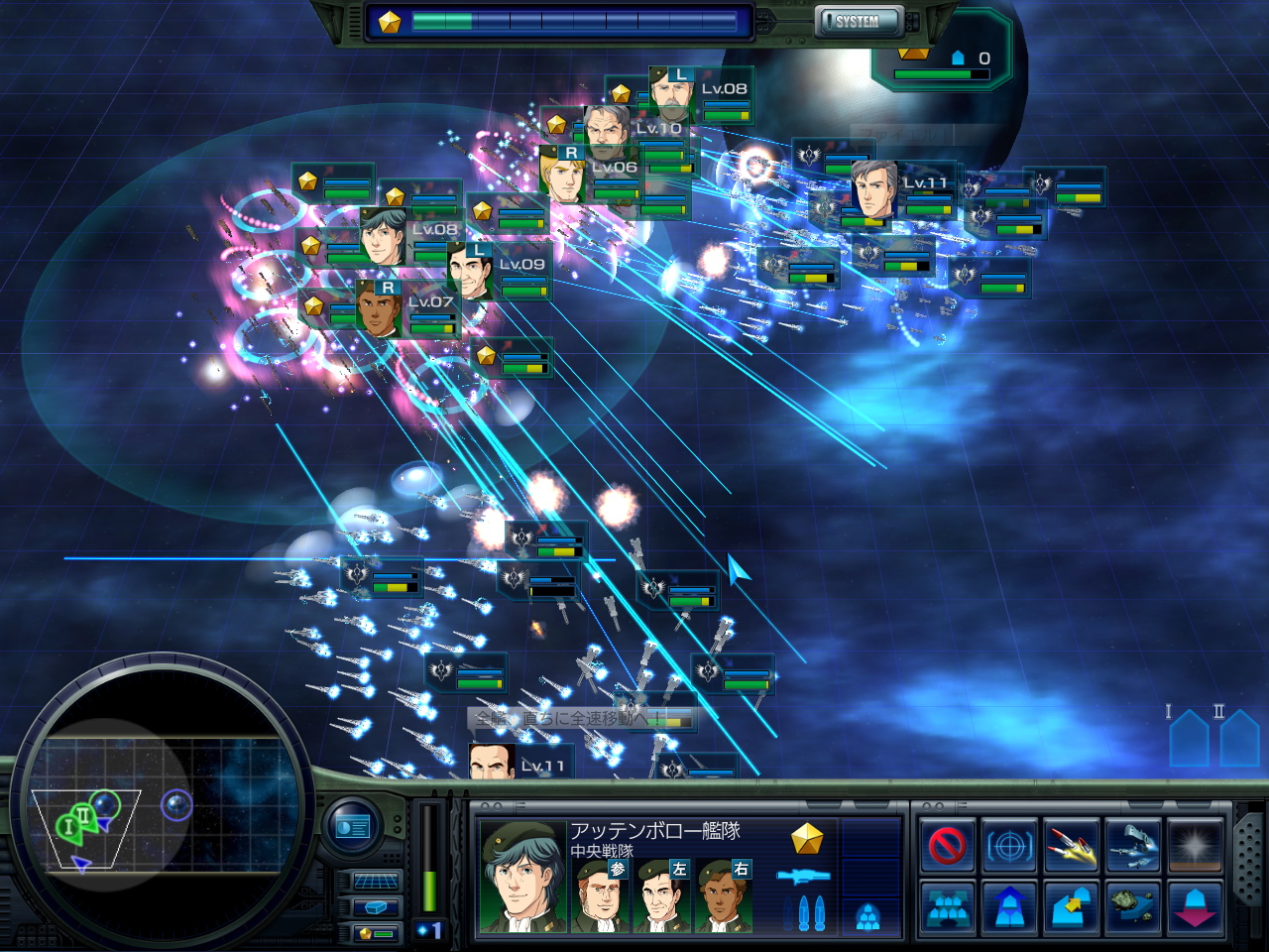 もちろん,敵要塞のガイエスハーケンを警戒する必要はあるが,通常の攻撃(ビーム砲台)から受ける損害は,ある程度はやむを得ないだろう。また,このステージでは,敵の艦隊を殲滅しても勝利となる。うまく敵艦隊を誘い出せたら,グエンやアッテンボローの特技を駆使して,被害が大きくなる前に一気に勝負を決めよう。