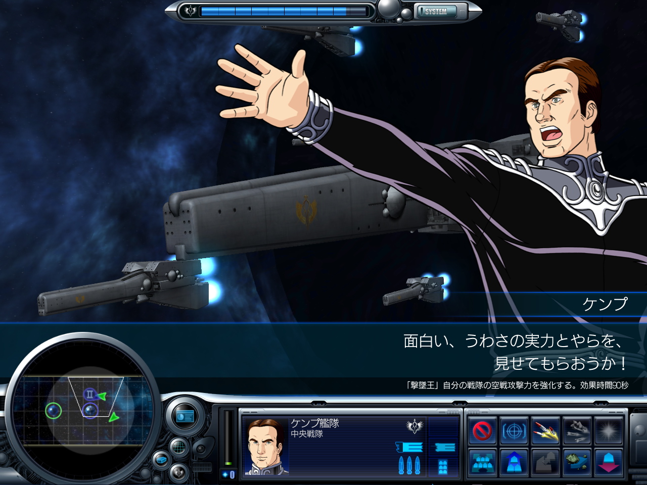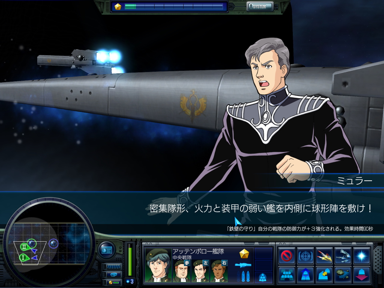 なお,ケンプ艦隊を生存させた状態でステージをクリアすると,原作では要塞と共に死んでしまうケンプが生存したままシナリオを進めることができる。ケンプを死なせたくない場合は,敵の艦隊をある程度削った段階でケンプ艦隊を要塞から出撃させ,ミュラー艦隊の援護に向かわせるといいだろう。