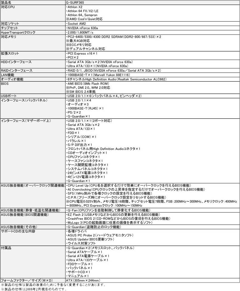 ASUSTeK,盗難防止機構付きゲーマー向けマザーボード「G-SURF365」を発表