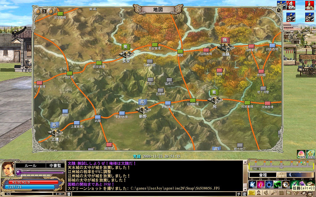 プレイヤーにとっての最大の魅力は,各サーバで週2回開催される「国戦」である。ゲーム内に現在実装されている33の都市は,それぞれ国の首都を除いて,すべて攻略対象となっている。
