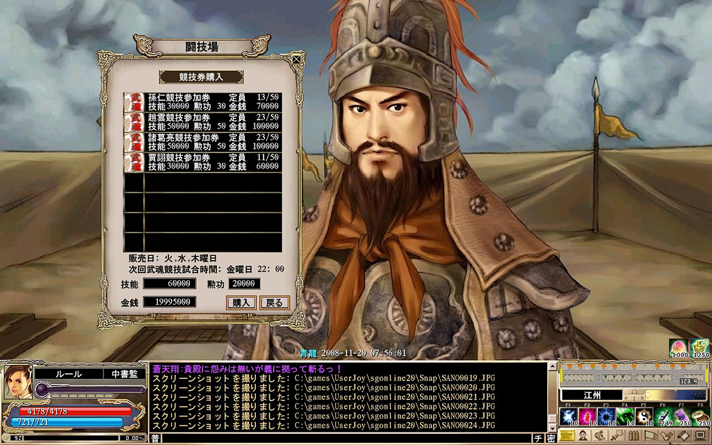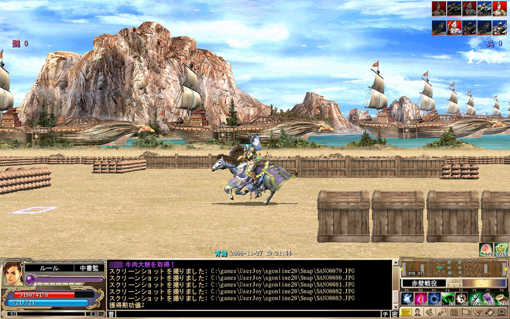 参加資格: レベル50以上 受付NPC: 赤壁戦役受付,孫輔 場所: 柴桑 参加費用: 5000両 ルール: 軍旗争奪戦 開催時間: 15:30〜16:30(土日のみ),