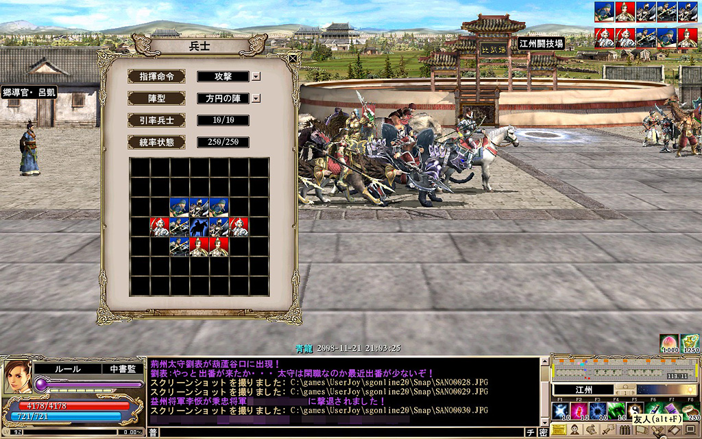 参加資格: レベル30〜60 受付NPC: 夷陵戦役受付,熊尚 場所: 江州 参加費用: 5000両 ルール: 軍旗争奪戦 開催時間: 15:30〜16:30(土日のみ),