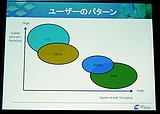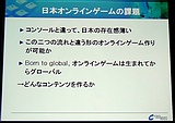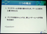 またアジア展開をするにあたっては,要求するPCスペックの低さも重要だとし,中国内陸部や発展途上国においては,そこが最大の関門になっている実情も紹介。ハイエンドなグラフィックスなどが,アジアでは逆に仇となっていることも多いと説明した。