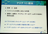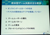 一通りの報告を終えたあと,ウィ氏は,いよいよ今回のテーマ「なぜ欧米のオンラインゲームはアジア市場で失敗したか」について,話を進めていった。