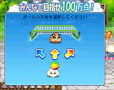 ゲーム内で現れるビーチボールをクリックするとシュートゲームが登場します。ボールの方向を選択し、ボールがゴールに入ると1得点になります。