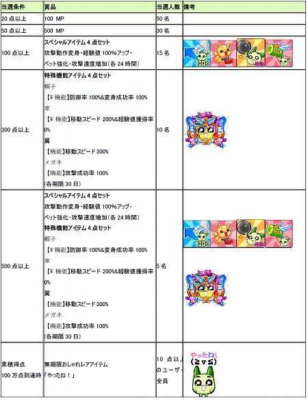 ・当選者発表及びMP支給:07年07月24日 午後6時予定
