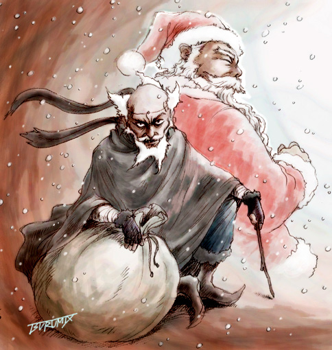 サンタクロース(Santa Claus)は小太りの老人で,白い髭,赤と白の衣装,子供達へのプレゼントが詰まった白い袋がトレードマークだ。トナカイに引かれたソリで空を駆け,煙突や窓からこっそりとプレゼントを贈る。ところがドイツなどでは,サンタクロースだけではなく,ブラック・サンタクロースともいえる存在が信じられている。それがクネヒト・ルプレヒト(Knecht Ruprecht)である。