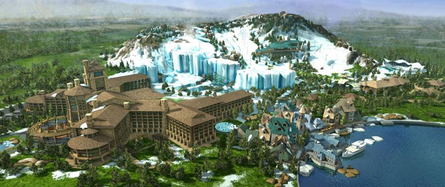 Bearfire Resortは,スロープのほかにも120メートルほどの氷河の壁や滝などがあり,まるでアゼロス大陸のWinterspringのようなのだ。そこには,600室という大型ホテルやカンファレンスセンター,ゴンドラがあるだけではなく,氷山の浮かぶ湖があり,その脇には中世ヨーロッパのようなショッピング街が用意されるという。