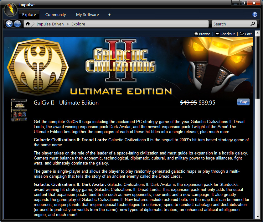 Stardockは,RTS「Sins of a Solar Empire」などを発売するパブリッシャで,2008年6月に「Impulse」というデジタル流通システムをスタートさせている。
