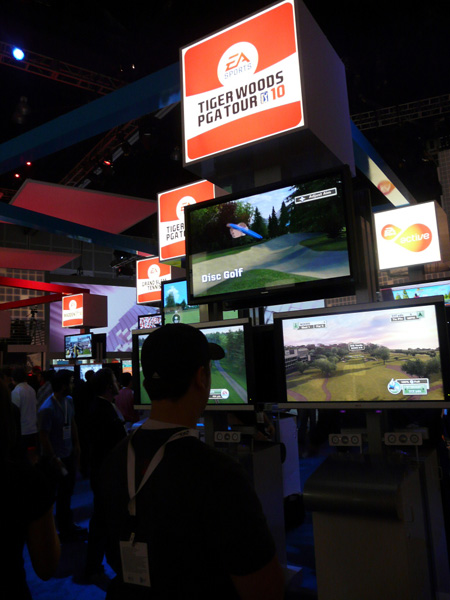 もともとトレードショウとしてスタートしたE3だが,その機能は早くから失われており,今ではメディアをとおしたアピールの場としての立ち位置に落ち着いている。ただ,いつリリースされるのか分からないソフトの展示は減り,ほとんどは2009年後半から2010年前半にかけての発売に限られた新作の発表になっていた。画像は,Electronic Artsブース内の試遊台群。すごい数