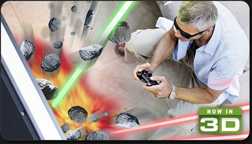 PCゲームに関していえば,2009年春に「GeForce 3D Vision」および「GeForce 3D Vision Discover」を発表したNVIDIAが一歩リードしており,「Fallout 3」や「Far Cry 2」,さらには「Medieval II: Total War」「Age of Empires 3」といった人気タイトルを含めた400本近いPCゲームが3Dに対応している。