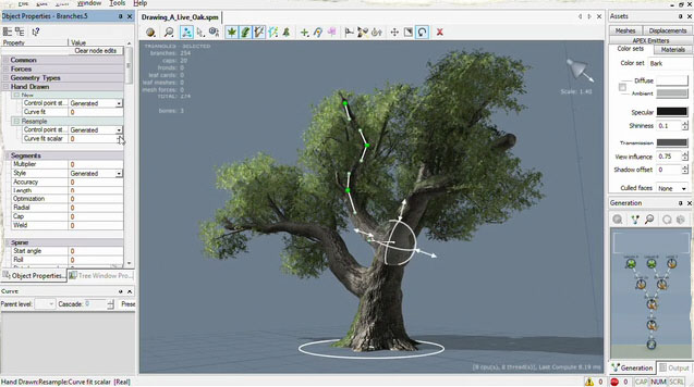 2009年にアップデートされた「SpeedTree 5.0」では,アーティストが細かく樹木をモデリングできるHand Control機能が追加されるなど,順調に進化しているようだ。映画でも使用できる精密なプリレンダリングが可能になったバージョン「SpeedTree Cinema」のライセンスをIndustrial Light & Magicが取得するなど,今やSpeedTreeは,樹木生成ソフトウェアの,名実共に第一人者となった。