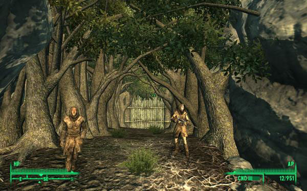 Fallout 3では,荒れた土地を緑に変えるという夢の機械「G.E.C.K」(Garden of Eden Creation Kit)が重要な役割を果たすなど,「樹木」が核戦争以前の世界を象徴する存在として位置づけられている。荒れ果てた,地肌がむき出しの大地を踏みしめてオアシスに近づくにつれ,次第に美しい緑が増えていくあの感動は,おそらく誰もが忘れられないはずだ。
