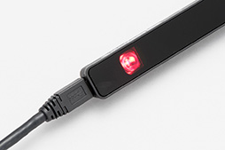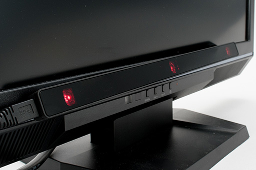 | PCと接続されると,Sentry前面の赤外線発光部が赤く光る。赤外線は本来,人の目には見えない不可視光なのだが,動作しているのが分かるよう,それっぽい色で光らせてあるのだろう |