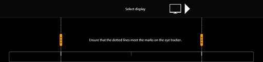 動作状況を確認して問題がなければ[Next]ボタンをクリック。次に進むと,今度は画面中央にオレンジ色の点が表示される。これは視点の移動範囲を読み取るものとなっており,ここでは,移動するオレンジ色の点を目で追う。それでキャリブレーションは完了となる。
