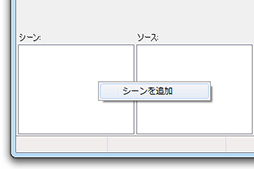 ![]() OBSとゲームを起動したら,フォーカスをOBSに切り替えて「シーン」欄を右クリック。「シーンの追加」で配信設定を作成する。シーンの名称はご自由に。今回は「シーン」とした |