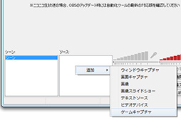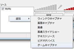 ![]() 次に「ソース」欄を右クリックして,「追加」→「ゲームキャプチャ」を選択する。今回は「World of Warships」との連動を行うので,略称の「WoWs」と名付けている |