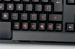 | フラットで低いキートップを求めたゲーマーは,[W]キーの目印も欲したとのことで,Apex M800の[W]キーには2つの突起が設けられている |