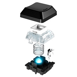 Romer-Gと異なるのは,QS1だとクリック感がなく,ストレートな押し心地になっている点と,Romer-Gだと底打ち感を和らげる工夫が盛り込まれているのに対し,QS1にはそれがない点の2つである。Romer-Gは,「Cherry MX Brown」風の打鍵感を目指して開発されたが(関連記事),QS1では,ストレートな押し心地が特徴である「Cherry MX Red」のショートストローク版を実現しようというコンセプトで開発されたのかもしれない。