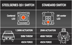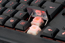 SteelSeriesといえば,「ゲーマー向けキーボードは『Cherry MX』メカニカルキースイッチを搭載するもの」という定番の流れを作った企業の一社だが,Cherry MX搭載モデルが乱立し,差別化が難しくなってきたことを受けて開発してきたQS1では,当然のことながら,Cherry MXとは異なる味付けがなされている。