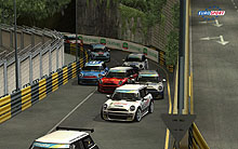 ![]() マカオのリバースコースを疾走するMINIクーパー達。コンパクトな車でも狭い市街地コースでは追い抜くのも大変だ。コツンと当てて抜いていくのはアリかなぁ |