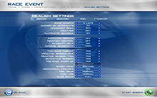 RACE EVENTでは,トラクションコントロールやアンチロックブレーキなどが使用できるドライバーズ・エイドの設定,ライバル車の速さ,ダメージレベルなどを「NOVICE」(初心者),「SEMI-PRO」(中級者),「PROFESSIONAL」(上級者)で設定して楽しめるほか,「CUSTOM」(カスタム)で好みの設定でのレースを楽しむことも可能だ。