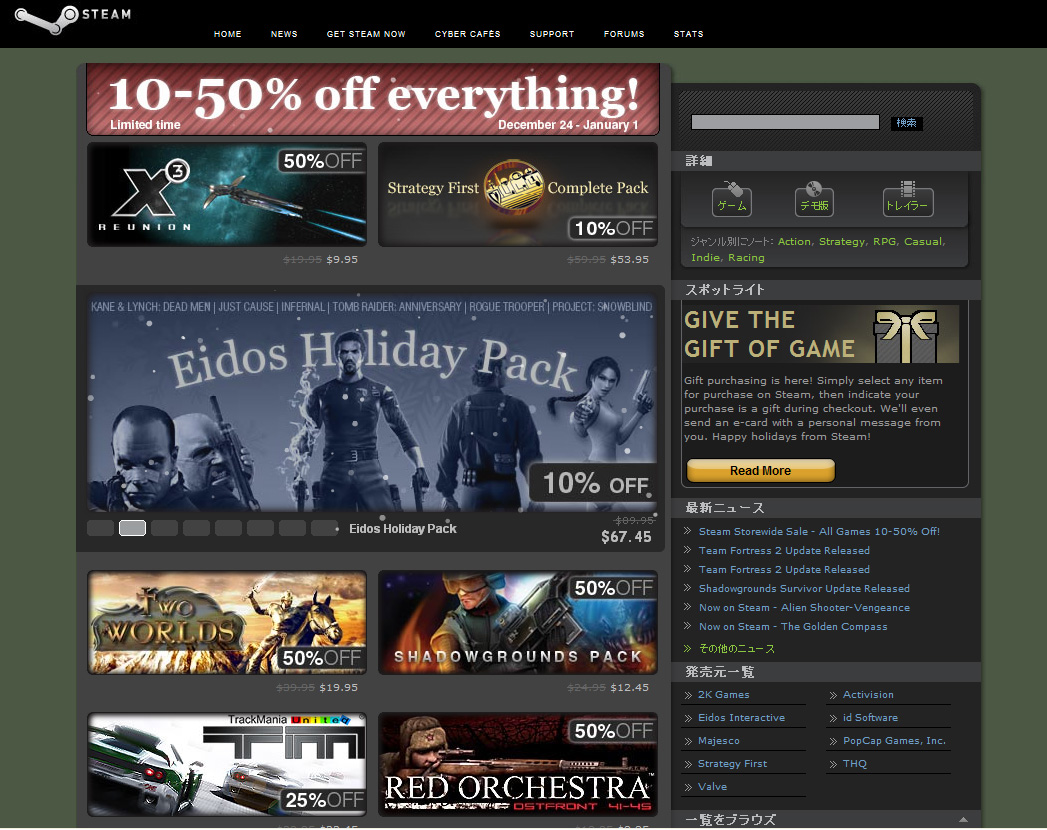 Steamで10%〜50%OFFのホリデーセールが開催中
