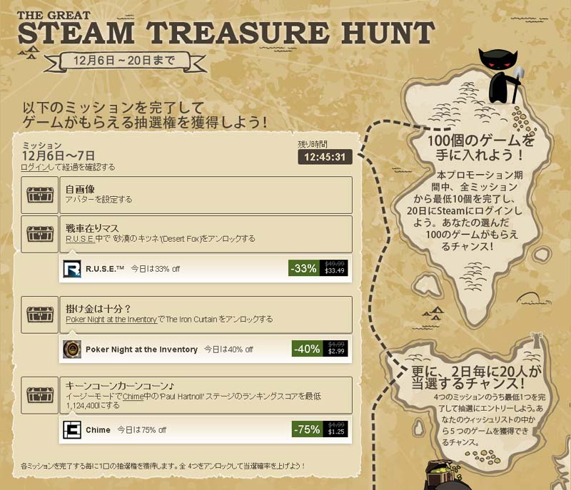 デジタル販売サイト「Steam」で年末企画,「The Great Steam Treasure Hunt」スタート。Steamのゲームを遊んでさまざまな特典を手に入れよう