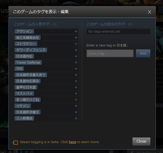 Steamの販売タイトルに検索用タグが設定できる新機能が登場