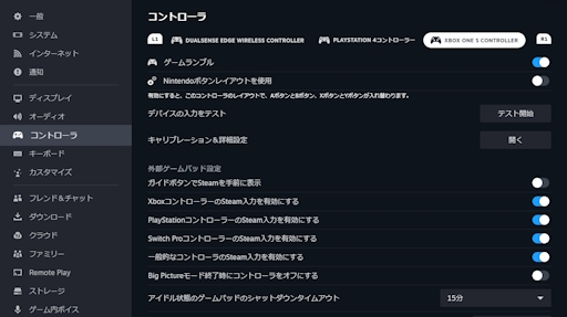もちろんXbox OneのコントローラもXInputに対応している。Steamのメニューから「設定」を選び,「コントローラ」にある「XboxコントローラーのSteam入力を有効にする」をオンにしてさえいれば,大抵の場合は問題なく使えるだろう。