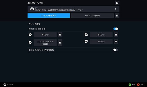 ここは完全にタイトルによるようで,今回プレイしたタイトル中,「ELDEN RING」「Rez Infinite」などでは,[A][B][X][Y]のままだった。この表記に慣れていない人は,プレイの際にはそこを覚える必要がある。