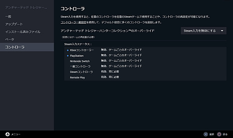 4.開いた画面で「コントローラ」を選び,オーバーライドの項目で「Steam入力を無効にする」を選択