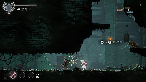 もともと本作には,正確に斜め入力を行うための補助機能がある。Xbox系のコントローラであれば[RB]ボタンを押しながら方向キーを操作すれば,斜め方向だけに入力が可能になる仕組みだ。筆者の場合,ダンジョン内で本当に慎重に動かなければならない局面では意識して[RB]を使うが,そうでないときは,横着して方向キーのみで済ませがち。その結果,意図しないマスに進んでしまい,荷物をぶちまけたり,変なスイッチを押す羽目になったりと,よくピンチに陥っている。