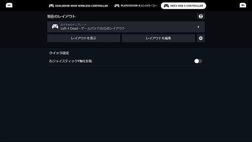 なお,「Steam入力を有効にする」の状態だと,Steam上で配布されているキーレイアウトのテンプレートを利用・編集できるようになる。代わりにハプティックフィードバックやアダプティブトリガーは機能しなくなるが,従来の振動のもとで普通にプレイすることはできるようである。