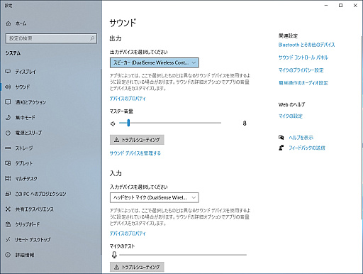 もしそうなってしまったら,タスクトレイのスピーカーアイコンを右クリックして→サウンドの設定画面を開き,出力デバイス(スピーカー)を変更しよう。マイクの場合は,DualSenseのものを使うならそのままでも構わないが,元に戻したいときは,入力デバイスを同じように切り替えるといいだろう。