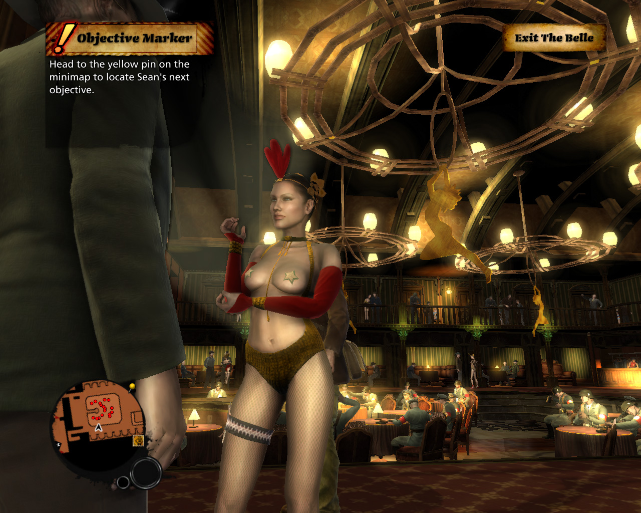 B級戦争活劇につきものの「お色気」が,大胆にフィーチャーされているのもSaboteurの特徴の一つである。なにしろ,ゲームのオプション画面で“Nudity”のオン/オフが選べてしまうという,欧米ゲーム業界震撼の仕様になっているのだ。ちなみにコンシューマ機版はDLCで対応しているという話。未成年の人は絶対にオンにしてはいけないので,気をつけていただきたい。