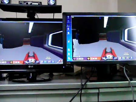 下に示したのは,グラフィックスカードからXL2410TとW2363Dにクローンモードで接続し,無料のFPS「Warsow 0.5」を120fps/120Hzでプレイしたところを,カシオ製のハイスピードカメラ「HIGH SPEED EXILIM EX-FC150」(以下,EX-FC150)で240fps撮影したものになる。右がXL2410T,左がW2363Dだが,残像感の少なさと動きの滑らかさ,どちらも甲乙付けがたいのが分かると思う。