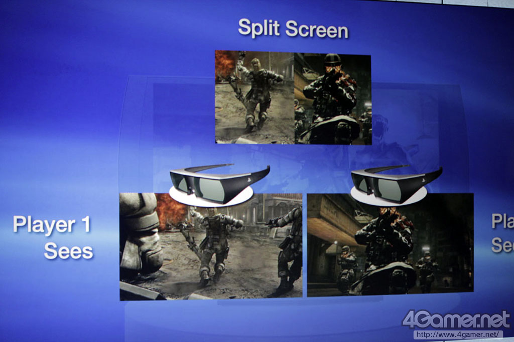 [E3 2011]PlayStationブランドで4倍速フレームシーケンシャル方式の3D立体視対応ディスプレイが登場。1台で2人が同時に別の立体視映像を見ながらのプレイも