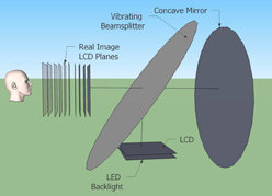 Volumetric Display Based on Vibrating Mylar Beam Splitter and LED Backlit LCD