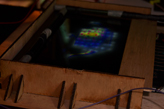 各ディスプレイパネルは透明なので,奥に配置されたディスプレイパネルに紫外線を照射することも当然可能だ。ただし,照射したい部分の照射線上に有色化している画素があると,紫外線を遮蔽してしまうため,各ディスプレイの画素は紫外線を遮蔽しないように配置しておく必要がある。結果として,得られる映像(≒立体像)は,点描画のような味わいのものとなる。