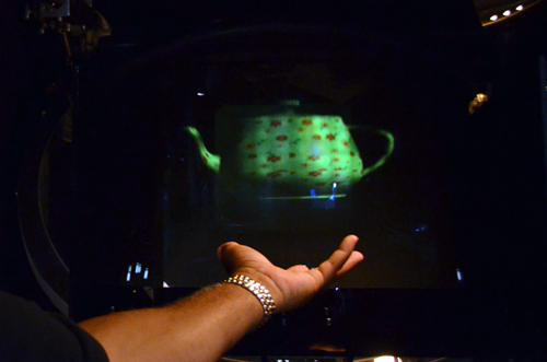 実際に映し出された映像を筆者も見たが,空間上に光点が出現して画像が立体的に描画されるため,その印象は,確かに立体物といったところだ。ただしSRV-5000では,描画光点が毎秒5万か所なので,解像感に乏しいのは否めない。また,アニメーション表示も可能だが,フレームレートは15fps程度になるとのこと。