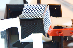 ![]() 高周波の振動を与えるとチェッカーパターンが見えなくなる。写真では黒くなっているが,肉眼では表面がザラザラした印象だった |
