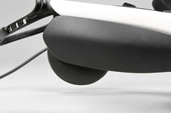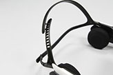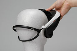 最後に,前後にスライドし,上下にも動くオンイヤースピーカーを耳の上から当てるようにセットすれば装着は完了である。