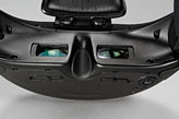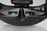 ともあれ,最終的には,二股バンドの下側と,センサー付きクッションの2点で支えつつ,二股バンドの上側でズレないよう固定するイメージになる。本体の底側が鼻に当たるような状態はアウトなので,最初は,鼻に当たらないようにしながら,うまく水平に固定できるよう設定していくのが肝要だ。起動時には水平に見られているかどうかをチェックする画面が表示されるので,それを使って,とにかく水平に,それでいて頭部の負担の少ないセッティングを探す必要がある。