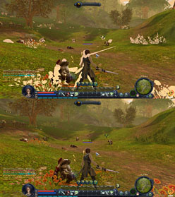 オンラインゲームというと,ポリゴンの粗いものが多く,そういうものを立体視させると,木や草の表現など,平面視でごまかせていたところがごまかせなくなる場合が多い。その点,AIONはモデリングも高精度であるうえ,Episode 2.5のグラフィックスアップデートにより,MMORPGとしてはほぼトップクラスの映像美となった。HMZ-T1は相手にとって不足なしといったところだ。