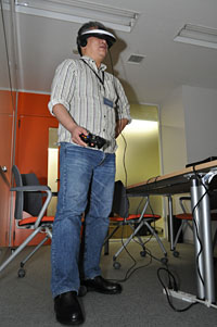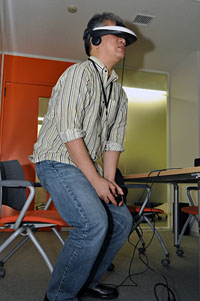 (PS3+純正コントローラ,テスター:TAITAI)想像以上にクリアな映像にまずびっくり。一昔前のHMDというと,同じソニーのグラストロンなどが思い出されるが,当時のおぼろげな記憶と比較しても,その技術的な進歩には感嘆せざるを得ない。