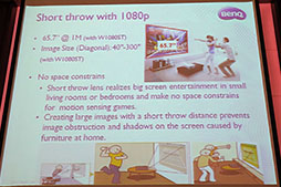 BenQ,ゲーム用途を想定した短焦点プロジェクタを発表。1m先に65.7インチのフルHD画面を表示可能