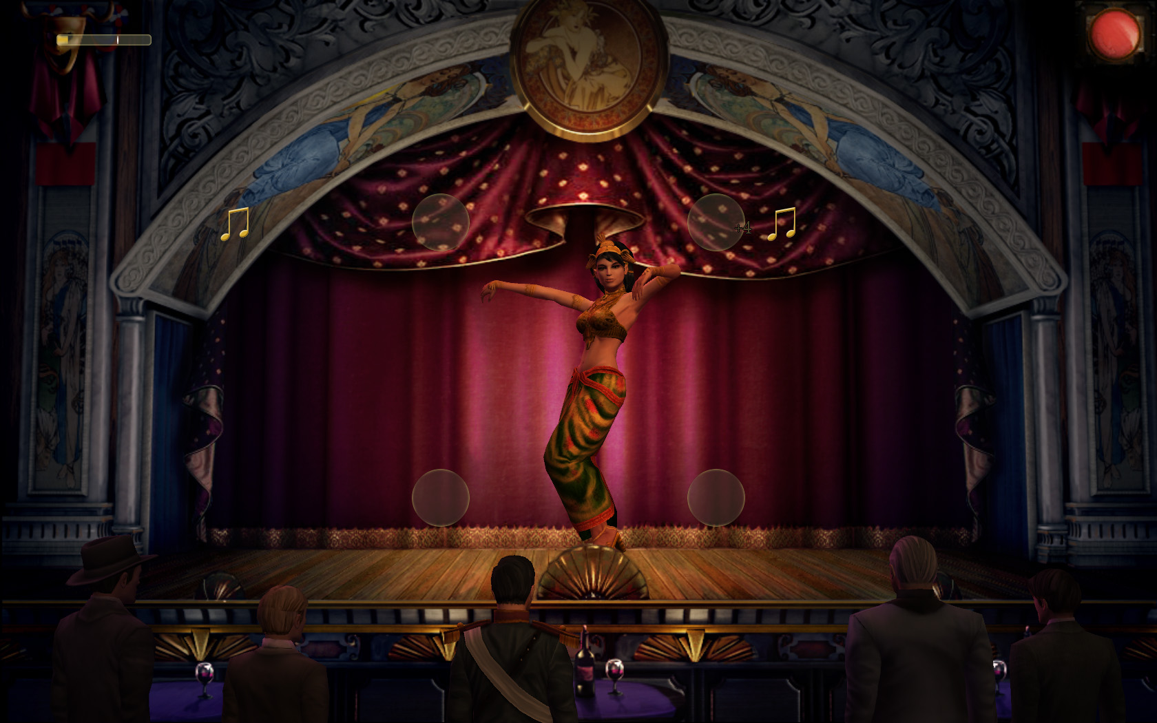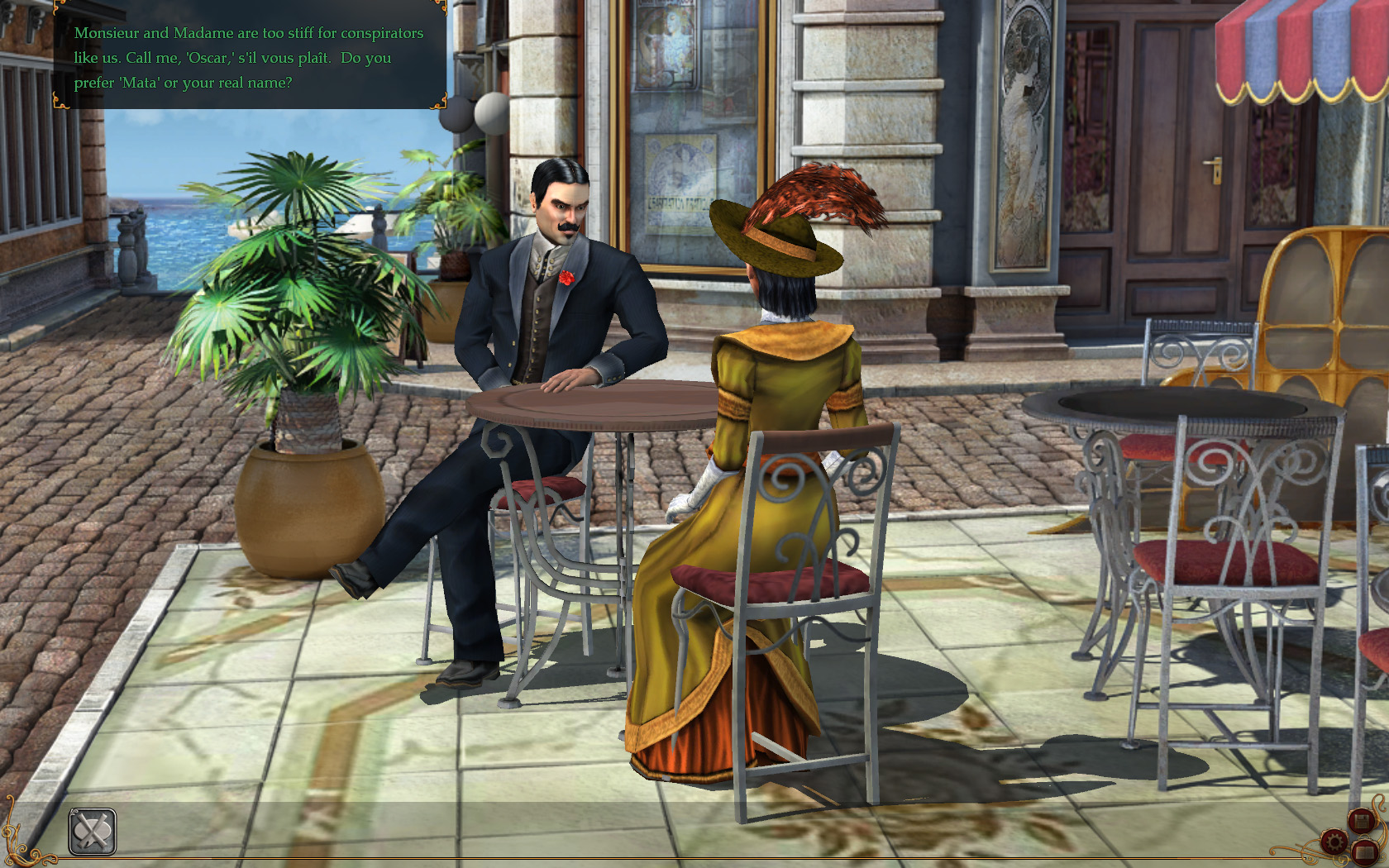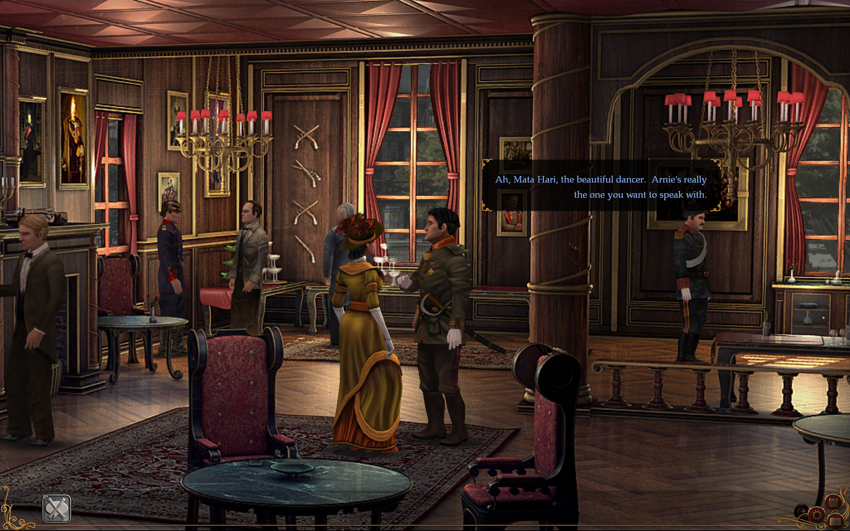 本作「Mata Hari」は,そんなマタ・ハリを主人公としたアドベンチャーゲーム。物語は,普通の踊り子だった彼女が,スパイに転身するきっかけとなった出来事からスタートする。とある社交場で出会った一人の紳士によって,招待状のないままパーティ会場にもぐりこんだマタ・ハリは,その謎の紳士のちょっとした手伝いをするという軽い気持ちで一人の実業家に接近し,首尾よく機密を手に入れることに成功するのだ。