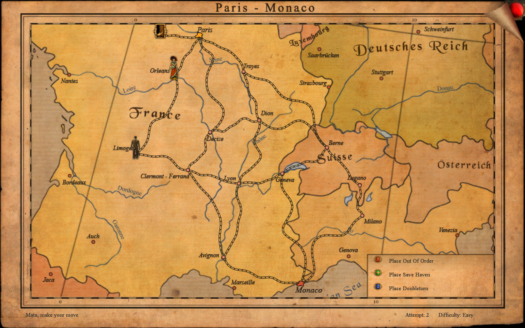 ところで,アドベンチャーゲームといえば,必ず登場するのがパズルだ。本作にも電話線をつなぎ替えたり,追跡してくる敵諜報員をまいて都市から都市へと鉄道で移動したり,ドイツ軍の高性能暗号解読器を操作したりといった場面でパズルシーンが登場する。